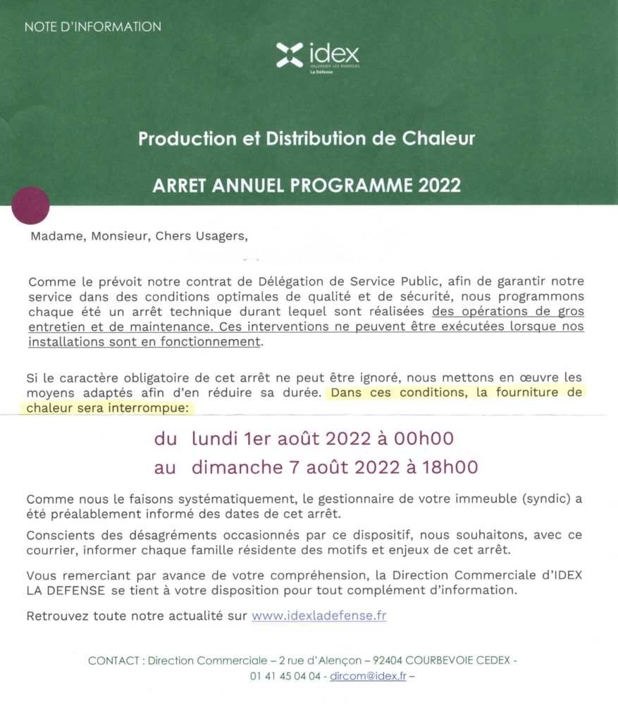 COUPURE ANNUELLE EAU CHAUDE AOÛT 2022